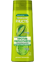 Шампунь 2 в 1 от перхоти для всех типов волос, совмещает в себе очищение кожи головы и кондиционирование волос. Формула с пиритионом цинка и экстрактом листьев зеленого чая заметно уменьшает количество перхоти с первого применения и препятствует ее повторному появлению. Благодаря активному концентрату фруктов волосы день за днем обретают силу и здоровый блеск.